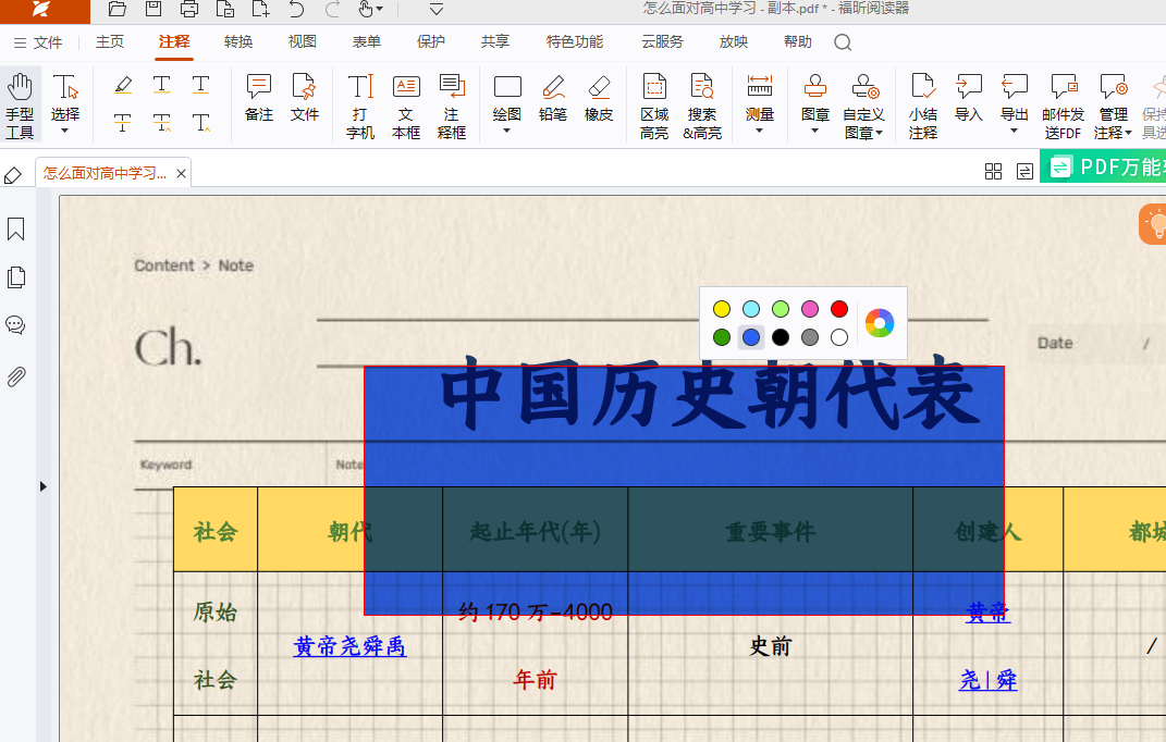 步骤二:在顶部工具栏点“注释”,弹出的工具栏里直接选“高亮”工具,鼠标会变成标记状态,想标哪段就按住左键拖选文字,松开手立马就高亮了,也能先点工具再选文字,怎么顺手怎么来。