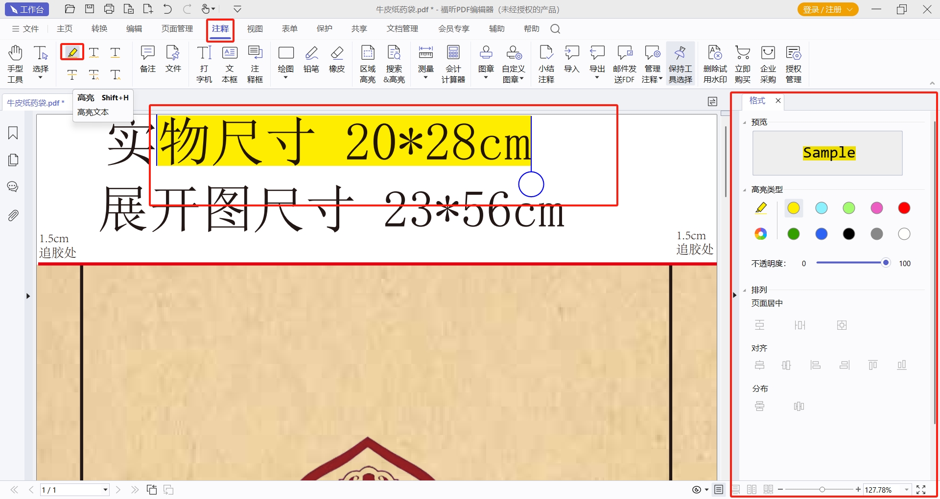 打开PDF文档之后,将鼠标滑动至需要标记高亮的内容部分,随后点击【注释】中的高亮按钮,然后长按左键,就可以将选择的内容标记为高亮,在右侧菜单栏中,还能够选择不同的高亮颜色以及排版,最后别忘记点击保存就可以了。