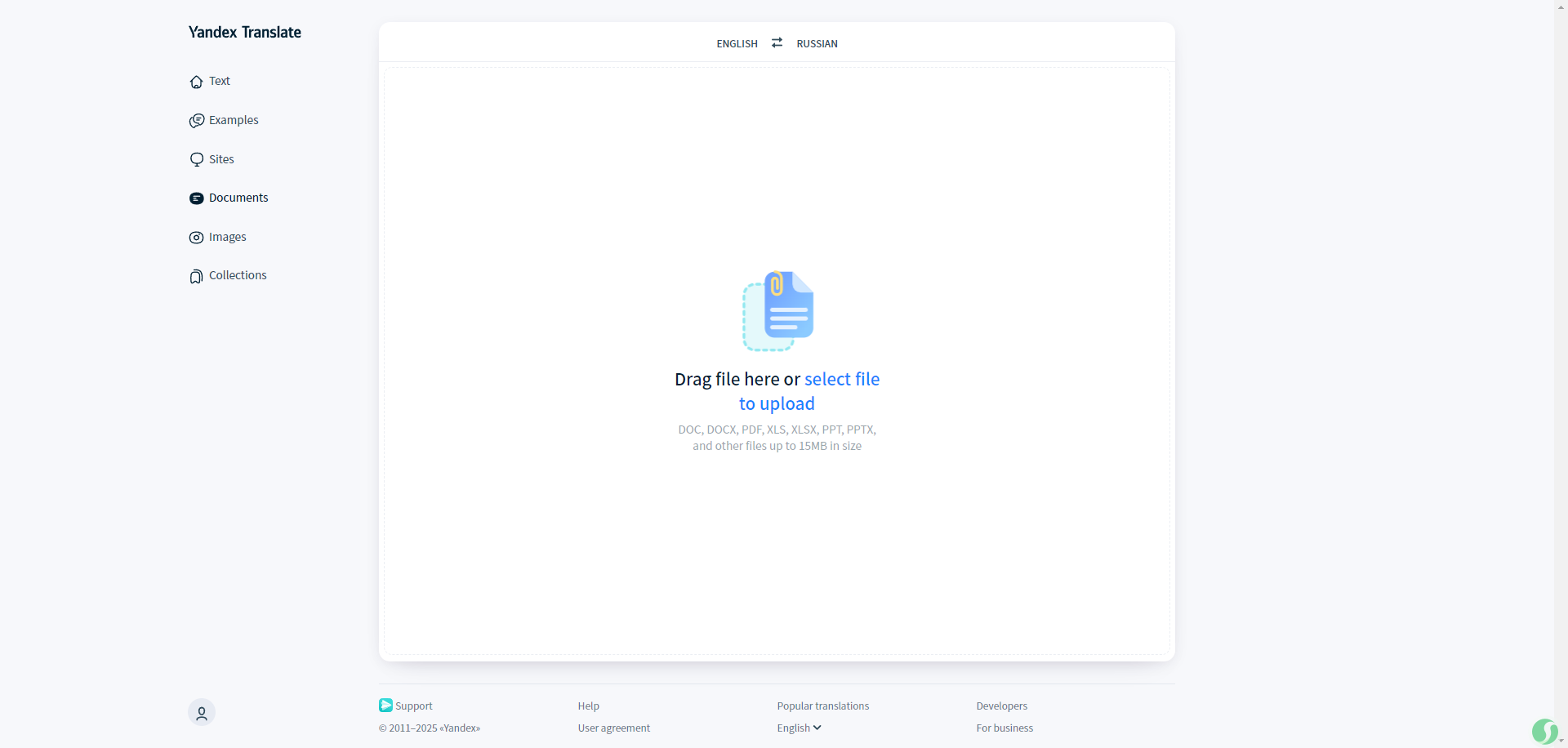 第一步,打开官网找到文档翻译入口,选中本地的PDF文件;