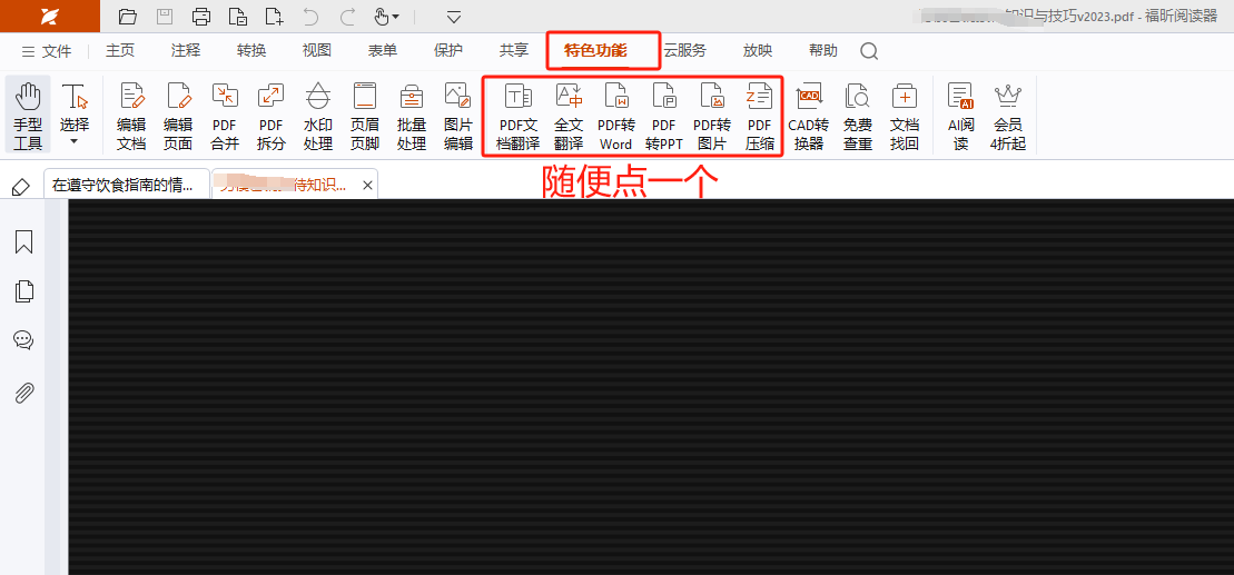 在工具栏里找到【特色功能】,在下方众多转换功能中,随便点击一个,这里我选择点【PDF转Word】