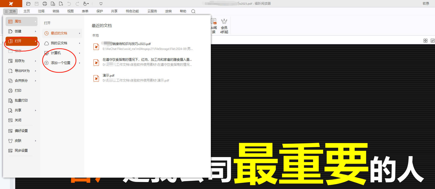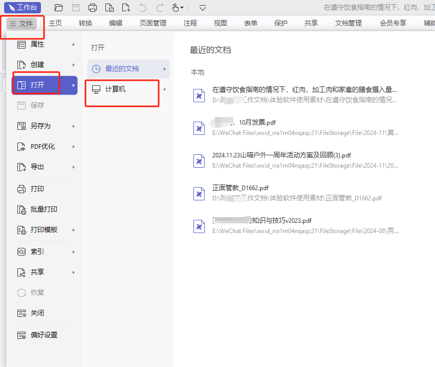 打开软件后,你可以点击【文件】-【打开】-【计算机】找到你要操作的PDF文件